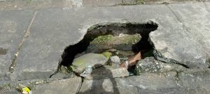 Denuncian el derrumbe de una parte de la acera en calle Mariño