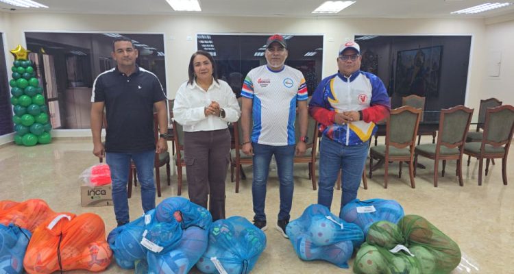 Entre los materiales entregados se incluyen balones de fútbol sala, fútbol de salón, voleibol y baloncesto, entre otros implementos deportivos.