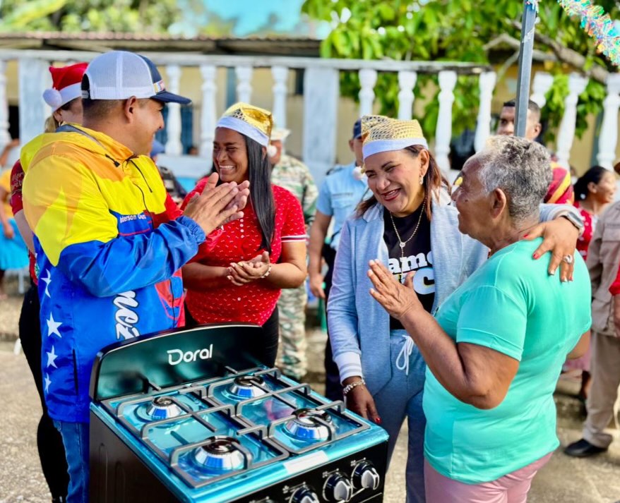 La mandataria también compartió con los habitantes del municipio, preparando hallacas junto al pueblo y ofreciendo una sopa comunitaria como parte del encuentro social que acompañó la jornada. Además, se realizó un espacio para reconocer a los emprendedores locales y destacar la artesanía de los waraos.