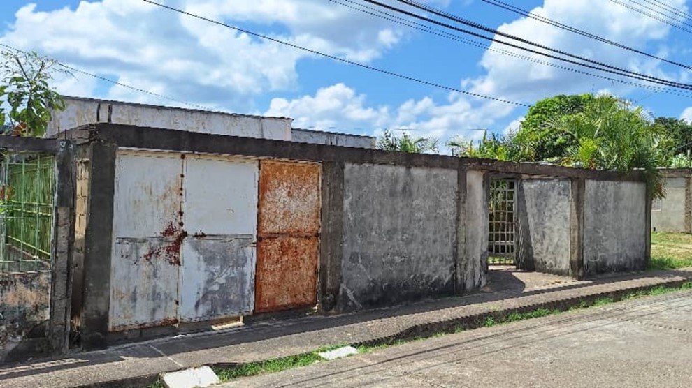 Está cercada en su totalidad con muros de bloques a una altura superior a los dos (2) metros. La extensa fachada luce un friso robusto y rejas de metal.